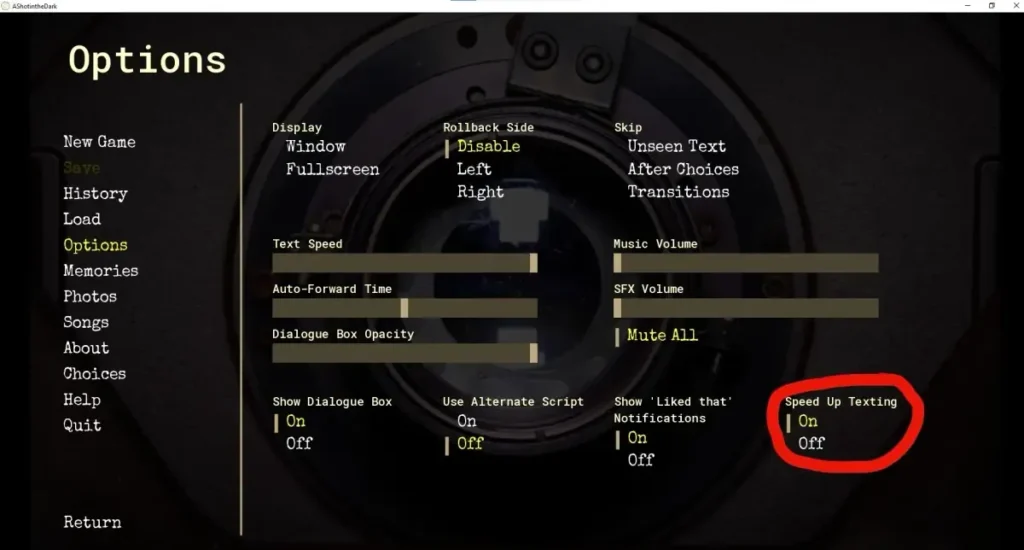 At its core, the visual novel gameplay mechanics of A Shot in the Dark are elegant in their design. You play as an aspiring photographer, and your camera is more than a prop—it’s a key narrative tool and a metaphor for your perspective. Throughout the game, you’ll be prompted to take pictures. These aren’t just for a gallery; they can influence conversations, affect character moods, and even unlock specific dialogue branches or scenes. It’s a brilliant way to tie the protagonist’s passion directly into the interactive choice system.